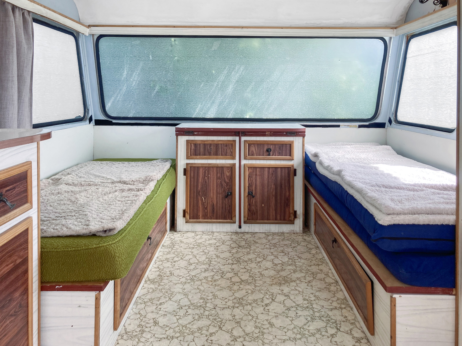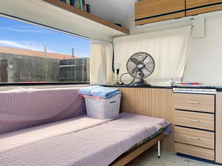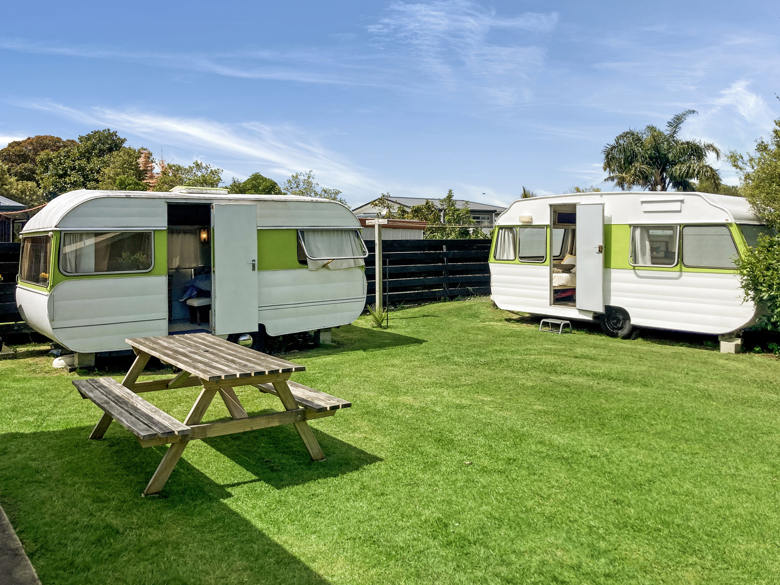 This unique property is like your own urban campsite – minutes from town, beaches, marina and harbour – with two caravans (plenty of beds), plus room for a motorhome (plugin already on site), tents and cars.