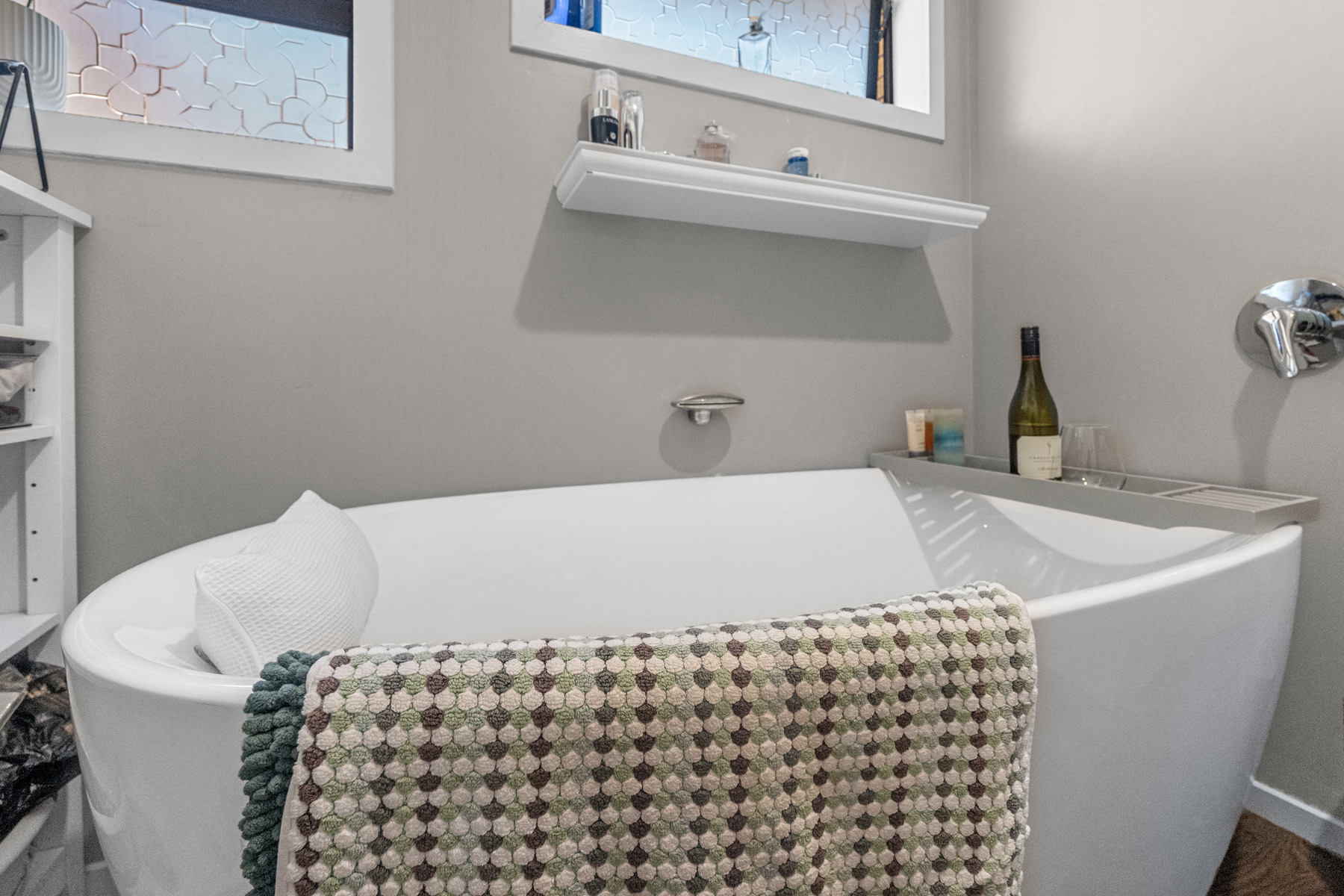 Inside, you'll find four generous bedrooms (or three plus an office) and two stylishly updated bathrooms, including one with a feature stand-alone bathtub. The modernised kitchen connects to a sitting area where you can take in the protected Harbour views and the spacious open-plan living and dining areas are kept cosy by a Kent wood-burner. The sunny deck provides the perfect spot for outdoor relaxation and entertaining.