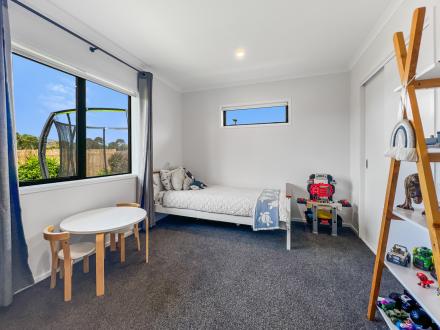 Stunning single-level builder’s own home, beautifully finished and set on a fully landscaped 503sqm section. Designed for relaxed family living, the home features 4 bedrooms and 2 bathrooms, including a stylish master suite with walk-in wardrobe and ensuite. The family bathroom includes a separate toilet for convenience.