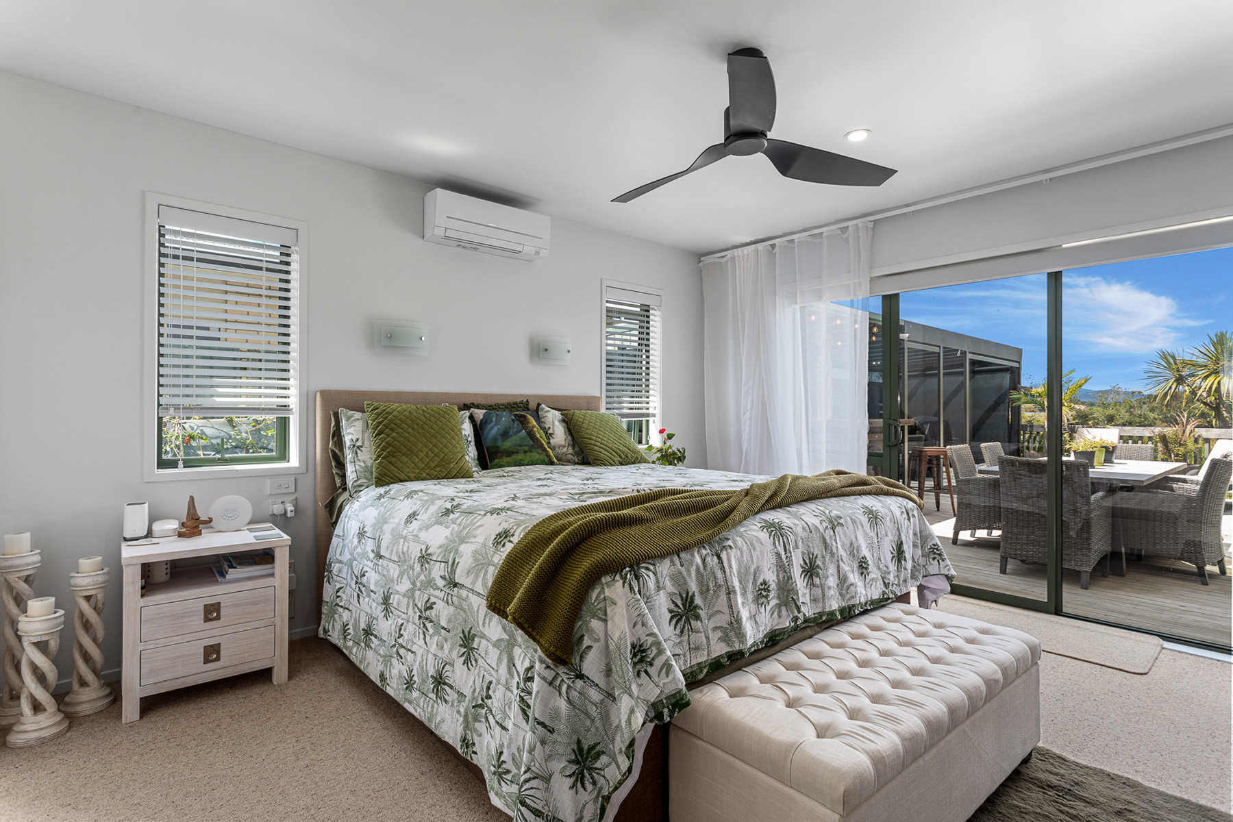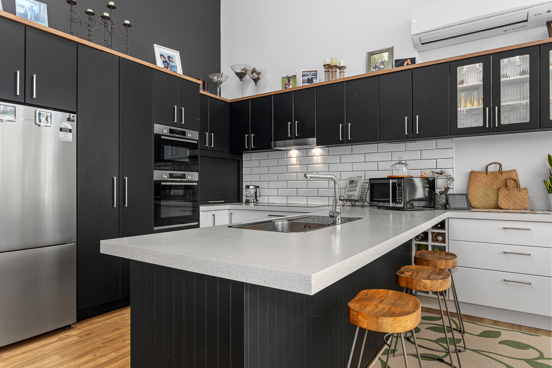 This well-designed home features four double bedrooms, including a master suite with walk-in wardrobe and ensuite, plus a stylish family bathroom. The spacious open-plan lounge, dining and kitchen area impresses with a 5-metre stud height, oversized windows and two Velux skylights, filling the space with natural light. Comfort is assured with three heat pumps, LED lighting and full insulation. The kitchen is equipped with quality Bosch appliances including induction cooktop, dishwasher and dual ovens, plus a Samsung fridge/freezer.